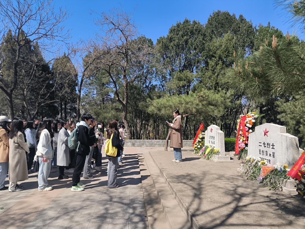 2023年3月30日上午,值清明节来临之际,pg游戏电子模拟器党总支在本科生、研究生三个学生党支部开展“缅怀革命先烈,不忘初心使命”主题党日活动,组织学生党员、发展对象和积极分子近50人赴长辛店“二七”纪念馆参观学习,并在“二七”革命烈士陵园举行悼念活动,党总支组织员张春霞带队参加。