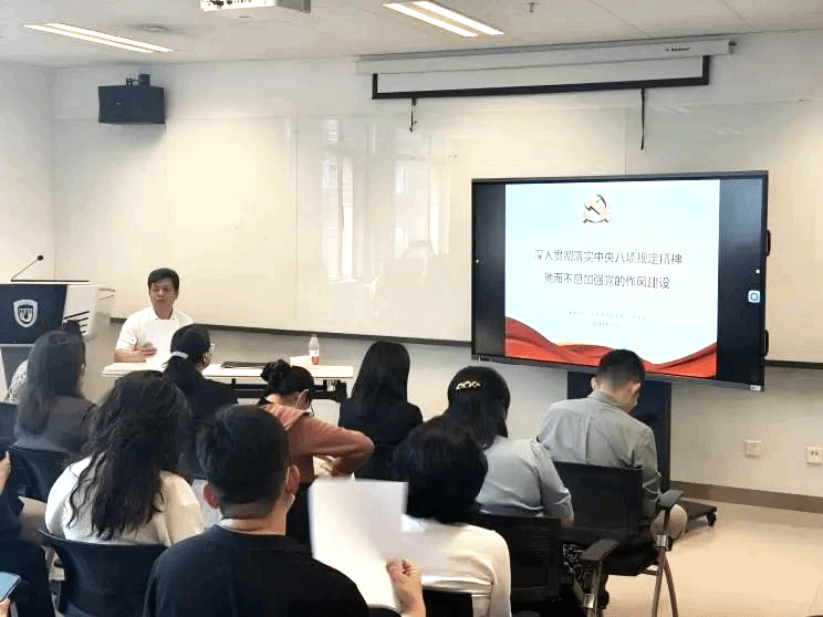 2025年5月14日下午,校纪委副书记、纪委办公室主任李正玉受pg游戏电子模拟器党总支、阿拉伯学院党总支邀请做题为“深入贯彻中央八项规定精神,驰而不息加强党的作风建设”的报告。报告会由pg游戏电子模拟器党总支书记、院长吴江主持。此次学习活动是pg游戏电子模拟器党总支与阿拉伯学院党总支开展深入贯彻中央八项规定精神学习教育联学联建活动,两个学院共计近70名党员师生现场聆听了报告会。