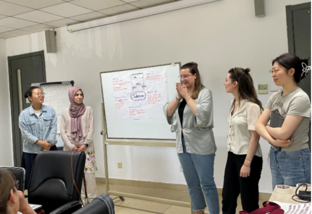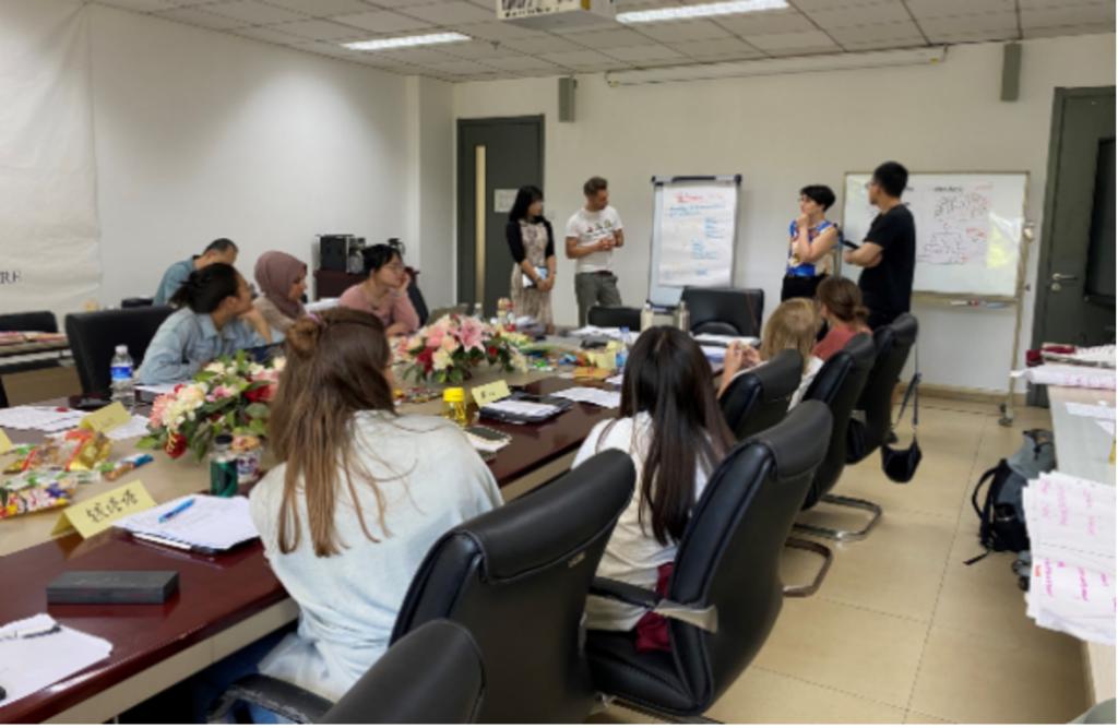 工作坊首日,中德两国同学通过破冰式的自我介绍迅速建立了友好关系,拉近了彼此的距离在首轮的讨论环节中,双方学子坦诚交流了对彼此团队的期待以及预期中的对方对自身团队的期待,为后续的深入交流奠定了坚实的基础当天下午,一场主题为“中国与德国:对手还是伙伴?”的热烈讨论,学生们对两个国家在国际舞台上的角色与互动有了更深刻的理解。次日,学生们聚焦于生活与工作中的中德价值观,通过团队合作,共同展示了精彩的观点碰撞与深入交流最后一天,工作坊迎来了高潮——模拟创建中德合资企业的实战演练:中德两国同学分组投入模拟的中德商务环境中,亲身体验跨文化合作的挑战与魅力在展示环节,学生们展现了丰富的合作成果,充分体现出跨文化语境的协同作用和中德文化间的精彩交融。