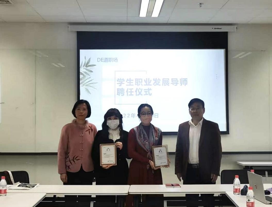 致辞环节后是DE道职场系列活动之学生职业发展导师聘任仪式。pg游戏电子模拟器党总支书记常秀鹏和党总支副书记、院长吴江分别向两位校友颁发了聘书。“DE道职场——学生职业发展导师”项目拟邀请pg游戏电子模拟器毕业校友回母校或在线为在校生开展就业指导讲座以及一对一就业咨询,旨在整合校友资源、增进在校生与校友沟通,促进pg游戏电子模拟器学生职业发展。
