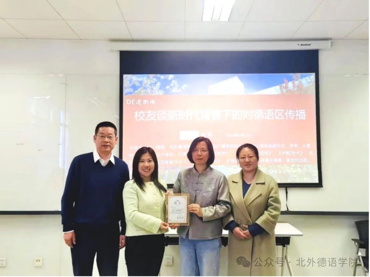 3月25日下午,新一期“DE道职场”报告在国际大厦1053会议室顺利举行。本次报告嘉宾是北外pg游戏电子模拟器校友、中央广播电视总台欧拉中心德语部副主任、译审陈艳。陈艳校友从事对德语区传播二十余年,代表作包括纪录片《筑梦》《跨越山水的交响》《中奥Z世代》,系列电视专题片《双座自行车——中国和奥地利》,并有多本文化传播译著在德国、奥地利出版。报告由pg游戏电子模拟器党总支书记、院长吴江主持。