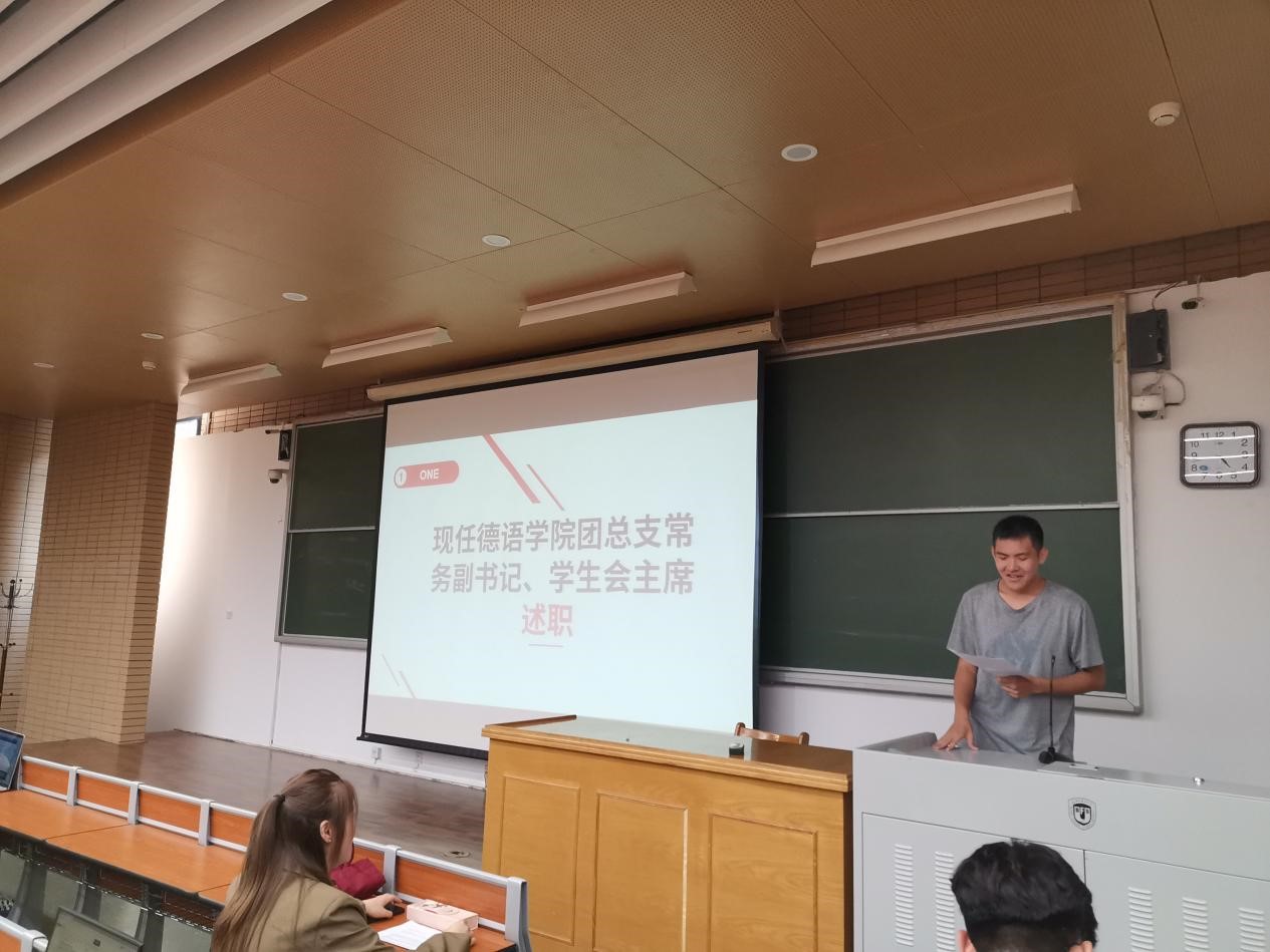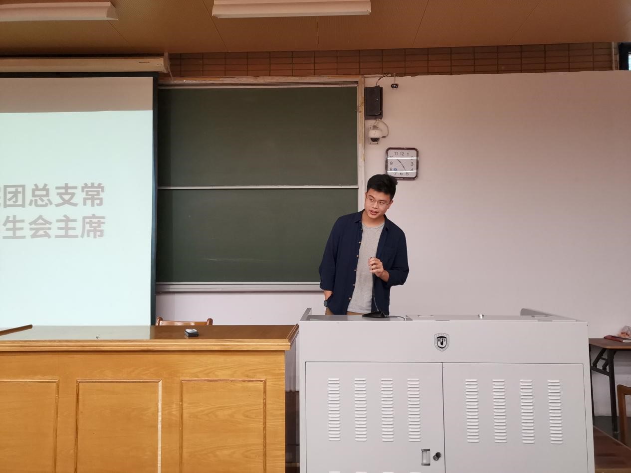 随后,团总支常务副书记黄唯城同学进行述职。他表达了对新一届部长团、主席团成员们的殷切期待,相信他们有能力把工作做得更好,有能力将pg游戏团总支学生会建设得更高效。