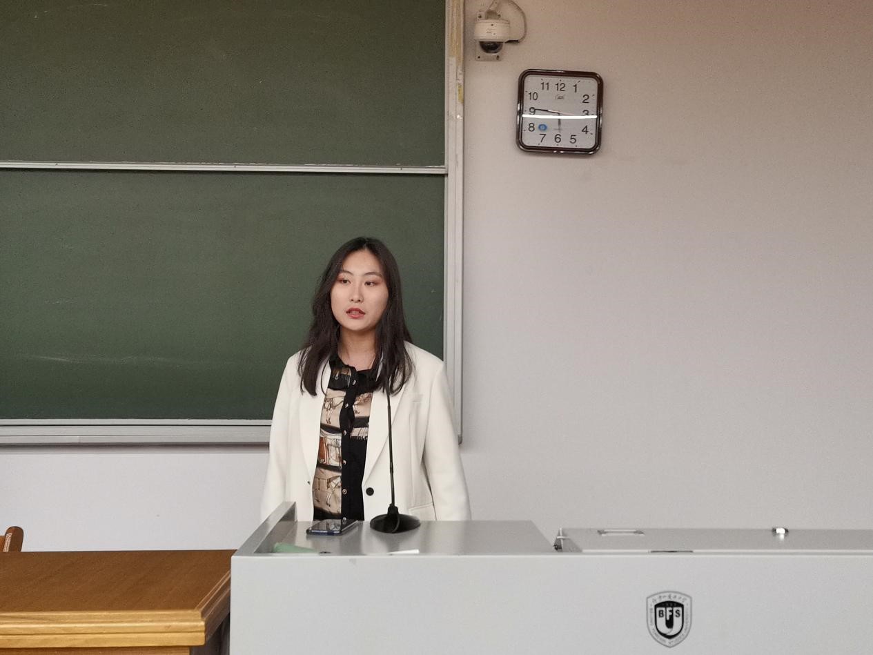 第一位竞选人是来自1902班的学生会学习部部长郭沈嘉乐。她以“为同学服务”的宣言为主线,从工作经历,工作安排和竞选宣言三方面谈起,一方面展示了自己的能力,一方面表明了对于未来负责学生工作的决心。最后,她以“希望未来,我也可以对在座各位说出,没事,我们一起解决。”为结尾,赢得了大家的掌声。