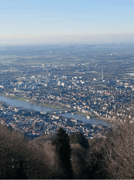 来到海德堡,最令人期待的景点之一便是那座充满历史与传奇色彩的海德堡城堡,以及山间静谧而开阔的王座山(Königstuhl)。不久前,我和朋友相约一起,踏上了这场穿越历史与自然的短途旅行。阳光洒满了海德堡,天空澄净,正是一年中少有的好天气。我们怀揣着期待与好奇,买了学生票的全景票,开启了一天的探索之旅。