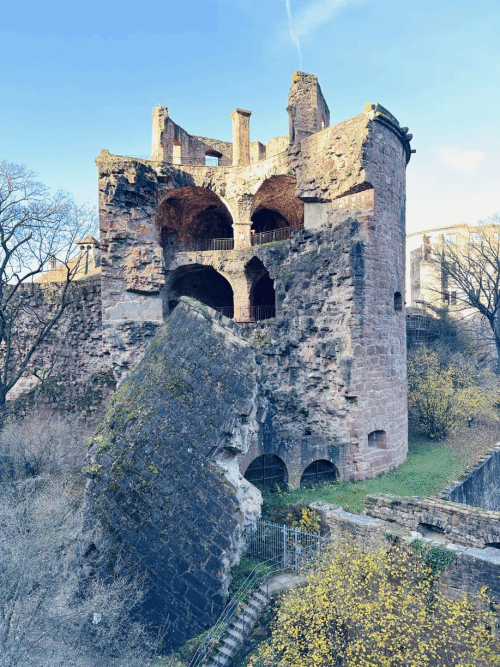 到达城堡后,眼前的景象让人震撼——高大的城墙与断壁残垣记录着战争的洗礼与岁月的侵蚀。我们在城堡的庭院中漫步,阳光洒在石砖上,温暖而柔和。这样的残缺美,似乎更能触动内心深处的一丝柔软。也正因如此,海德堡城堡不仅仅是一处旅游胜地,更是一座能与人对话的历史丰碑。