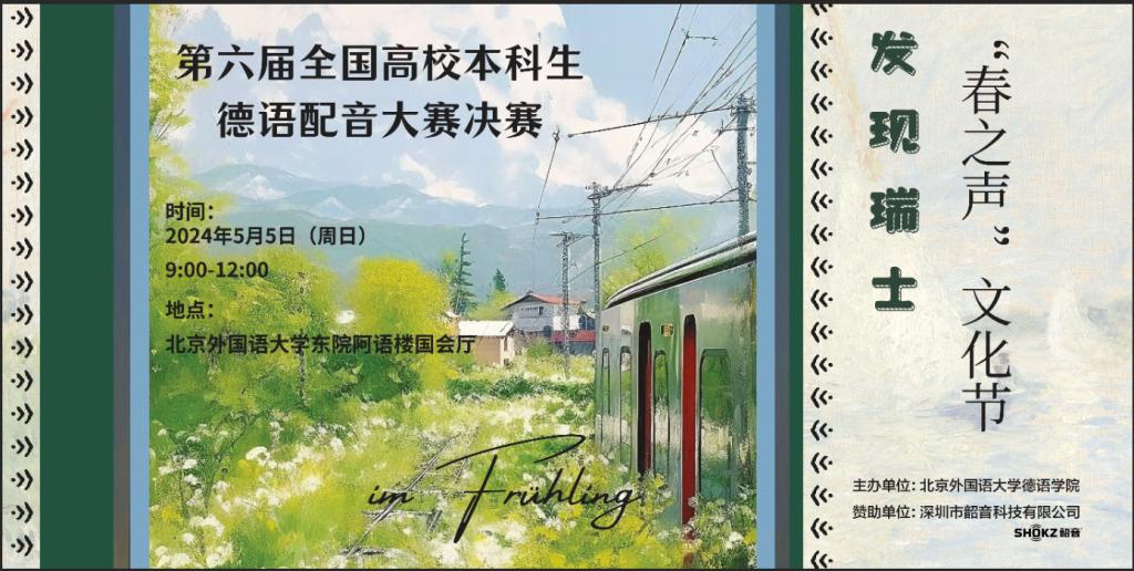 由pg游戏电子模拟器主办的第六届全国高校本科生德语配音大赛(以下简称“大赛”)决赛将于2024年5月5日(周日)9:00-12:15在pg游戏电子模拟器东院阿语楼国会厅举行。此次大赛决赛以瑞士为主题,邀请10支晋级的高校代表队齐聚pg游戏电子模拟器,共同开启“发现瑞士”的声音之旅。