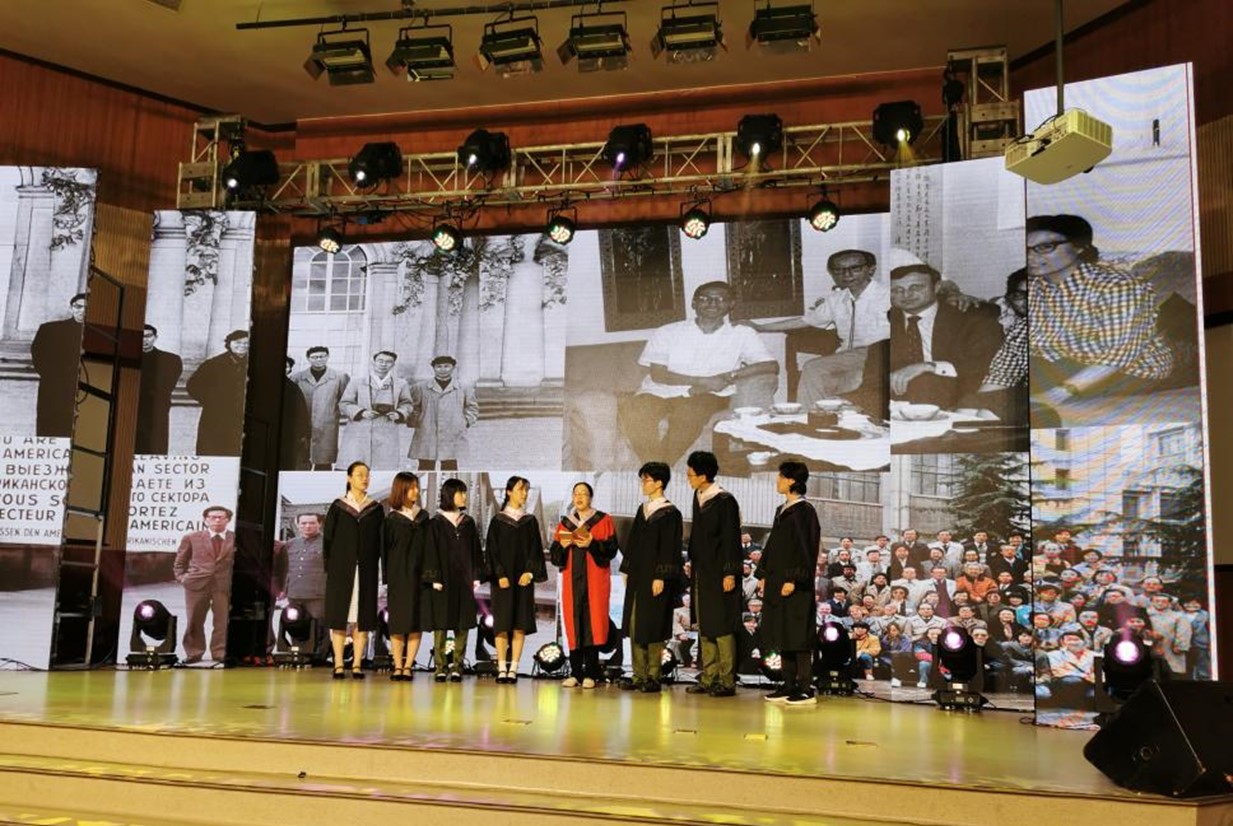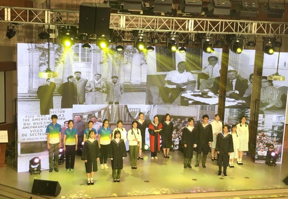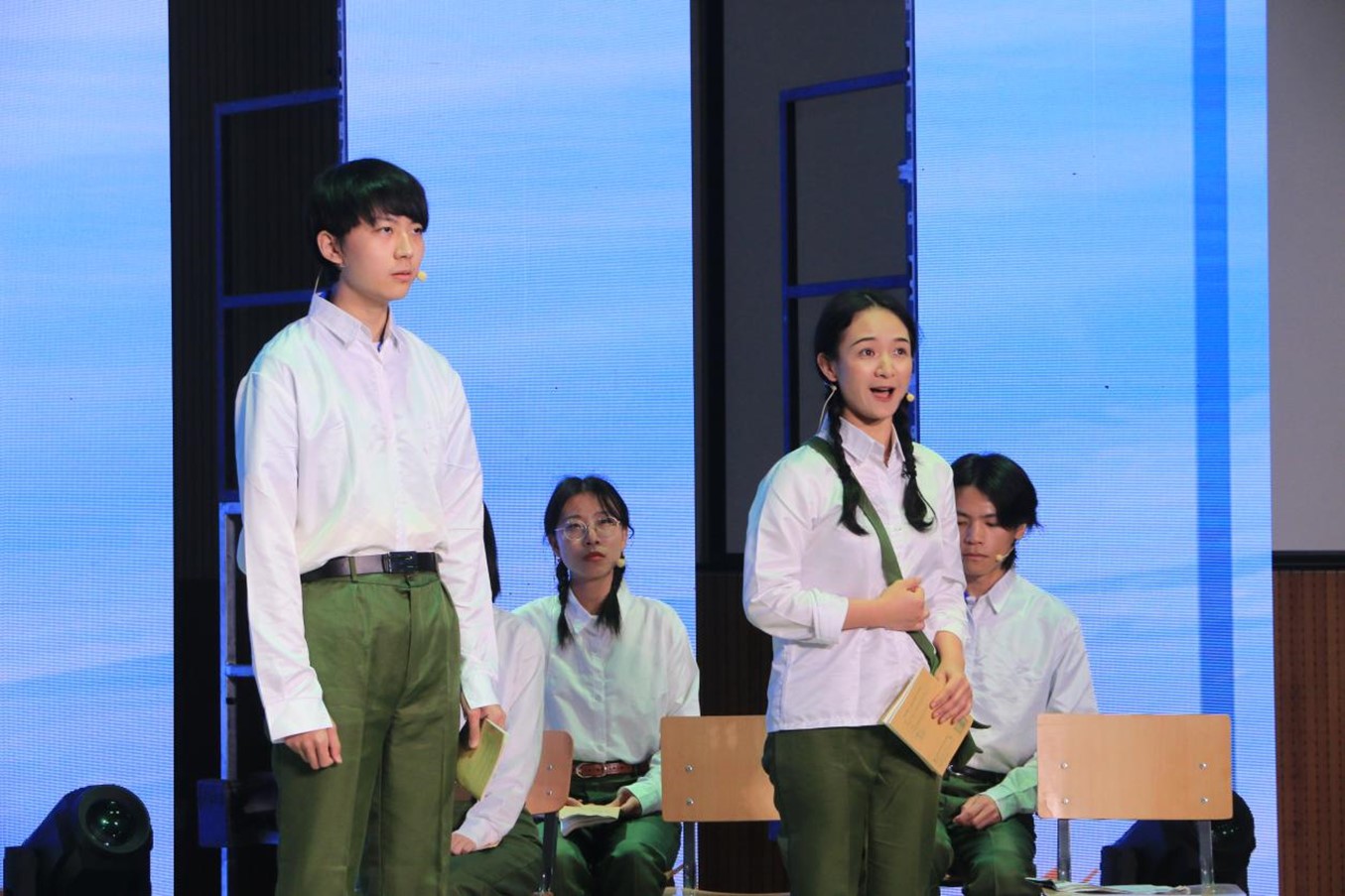 中德双语原创诗歌朗诵剧《我们的青春》,由辅导员张春霞编剧,pg游戏电子模拟器教师周海霞带领王清心、徐泽茗、张乃文等20余位本硕学生参演。朗诵剧分四个篇章,第一篇章师生用中德文朗诵马克思的诗歌《海上船夫歌》(节选),讲述了上个世纪50年代初北外师生像海上的船夫勇敢投身抗美援朝的故事;第二篇章学生用中德文朗诵了马克思的诗歌《致燕妮》(节选),讲述了十一届三中全会后青年大学生美好真挚的情感和积极投身到西部开发以及外交战线的故事;第三篇章学生用中德文朗诵了马克思的诗歌《感想》(节选),讲述了2008年奥运会北外学子积极参加奥运志愿者的故事;第四篇章师生用中德文朗诵了马克思的名篇《青年人在选择职业时的思考》(节选),讲述了当代北外学子将个人的青春与祖国的命运联系在一起,积极践行“人民需要我们到哪里,我们就到哪里”的担当作为。
