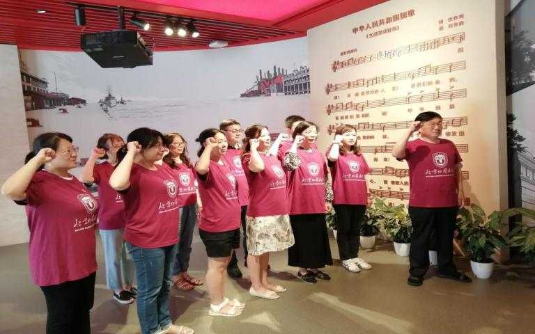 7月9日下午,老师们参观了位于上海杨浦区的全国爱国主义教育示范基地——国歌展示馆。国歌馆以国歌故事为主线,全面展示了《义勇军进行曲》诞生、传播、立法及其相关国歌知识。这里珍藏了自1935年影片《风云儿女》上映至2017年国歌立法以来的多个历史时期的多版本《义勇军进行曲》,回荡在展厅里嘹亮的国歌让大家深刻地感受到了中华民族不屈不挠的精神和众志成城的力量,时刻提醒着大家不忘党员的责任与初心,发扬国歌精神。pg游戏电子模拟器教师党员们在党总支书记常秀鹏的带领下,在国歌的见证下,重温入党誓词,重忆入党初心。