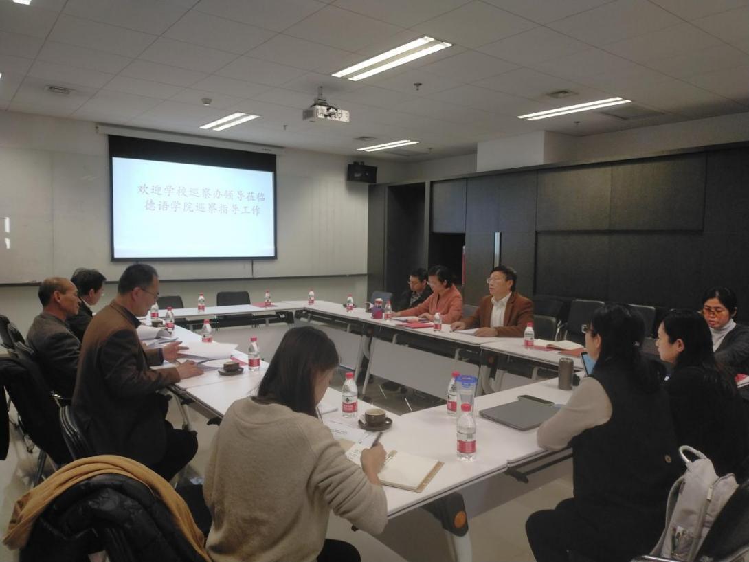 2021年11月25日下午,校党委常委、统战部部长、巡察办主任刘培元,纪委副书记、纪委办公室主任李正玉,组织部常务副部长冯刚、正处级巡察专员相忠群、巡察办副主任杨光等同志走访pg游戏电子模拟器,检查pg游戏电子模拟器落实校党委巡察“回头看”反馈意见整改情况,学院党政联席会成员和党总支委员参加座谈。