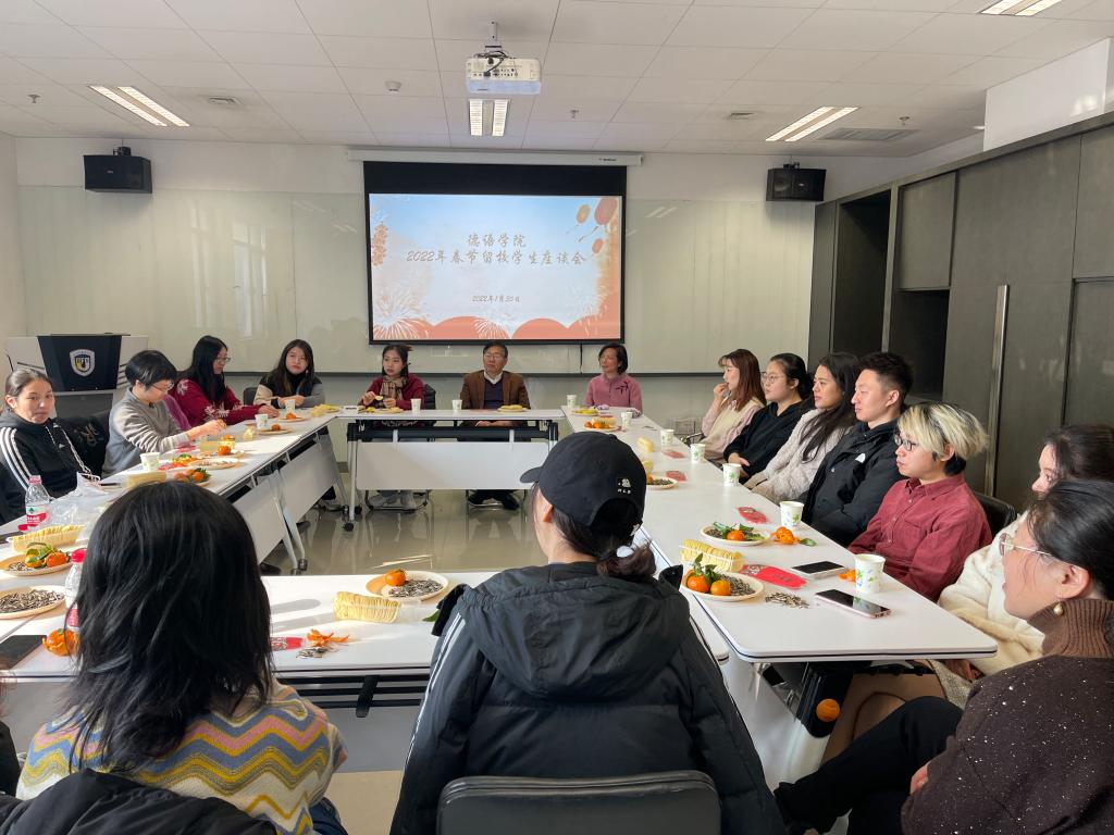 2022年1月30日上午10点,pg游戏电子模拟器在1053会议室举行春节留校学生慰问座谈会,pg游戏电子模拟器党总支书记常秀鹏,党总支副书记、院长吴江,副院长姚燕、教工党支部书记张晓玲、辅导员张春霞、张婧,20余名春节留校学生参加了座谈会。