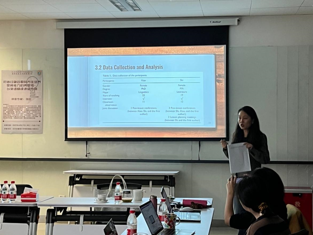 系统梳理思辨及其与英语作为一门外语(EFL)的关系、思辨教学的途径和方法、思辨与阅读教学以及我国背景下的思辨教学等研究领域的相关文献后,张虹教授在研究部分细致讲解了研究背景、研究参与者以及数据的收集和分析,并通过研究结果回答了前面提出的两个研究问题。之后,张虹教授对研究结果进行了深入讨论,如:该研究中发现研究参与者的思辨教学方法从隐性转变为了显性,同时还凸显了教师对学生阅读日志进行反馈的重要性等。