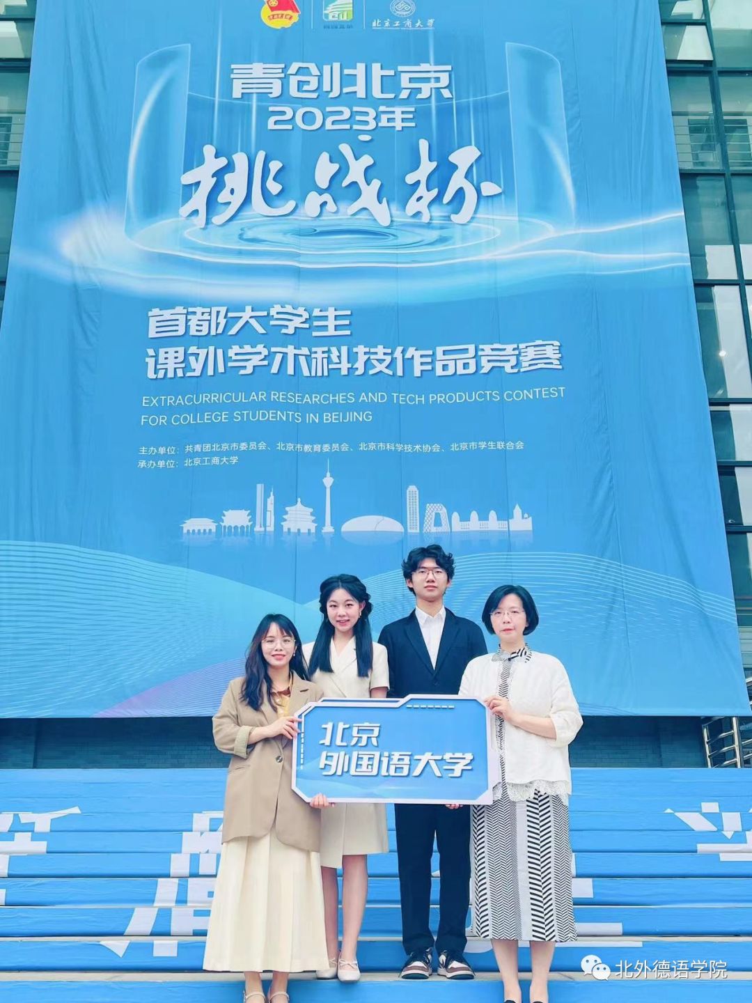 学院将以本次表彰为契机,以实际行动感召更多的学生参与到课外科研竞赛的队伍中,鼓励更多学生将创新思维与社会实际发展相结合,积极投身国家建设,为中国与世界的文化交流贡献北外青年学子的智慧与力量!
