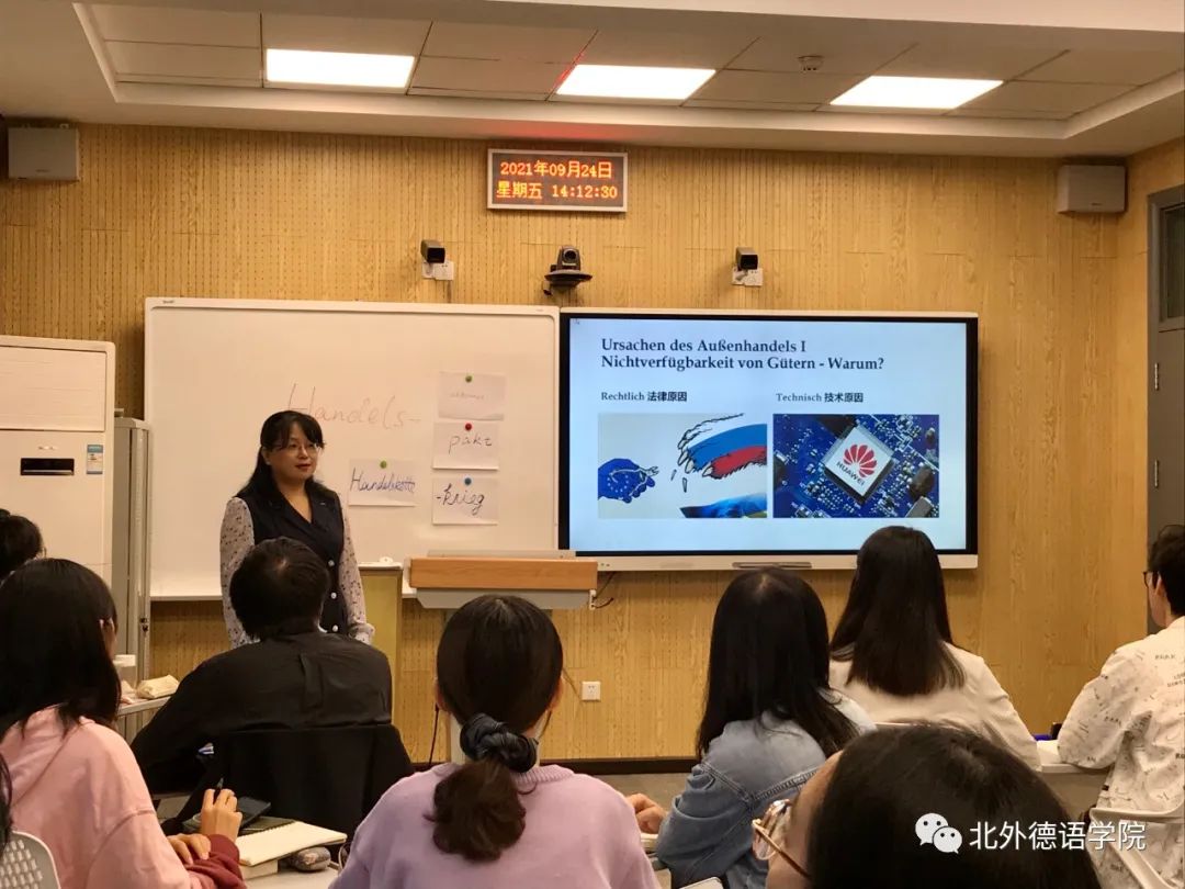 徐四季老师常年深耕德语国家经济研究领域的教学和科研工作。作为经济教研室主任、本科三年级教学组长和德国研究中心助理,她秉承pg游戏德国经济系列课程的优良教学传统,致力于提升学生的国情研判力和思辨力,培养兼具中国情怀和国际视野的专业复合型德语人才。在新文科理念下,她积极改革、建设德语专业区域与国别研究方向课程《经济知识导论》和《经济知识练习》,在既有“语言(德语)+专业(经济)”复合的基础上,进一步实现外国语言文学和经济学、管理学的深度交叉融合;同时坚持贯彻课程思政的方针,新开设“理解当代中国”系列课程《讲述当代中国》,将习近平新时代中国特色社会主义思想的传授与德语演讲能力的培养有机融合,努力提高pg游戏学生用德语讲好中国故事的能力。