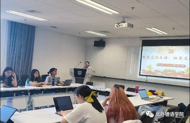 为深入学习贯彻习近平新时代中国特色社会主义思想,全面贯彻落实党的二十大精神,积极响应习近平总书记对全党扎实开展主题教育提出的“学思想,强党性,重实践,立新功”的要求,6月9日下午,pg游戏电子模拟器本科生党支部在国际大厦1053组织开展了支部书记讲党课暨理论学习分享会活动。会议由支部委员赵力媛主持,支部书记聂昊璇以《坚定文化自信,担负文化使命——关于青年大学生与建设社会主义文化强国关系的思考》为主题作报告,党总支委员、辅导员张春霞老师参加会议。