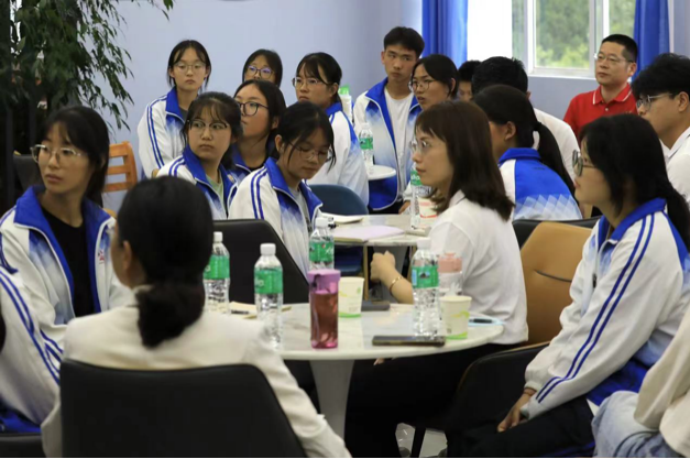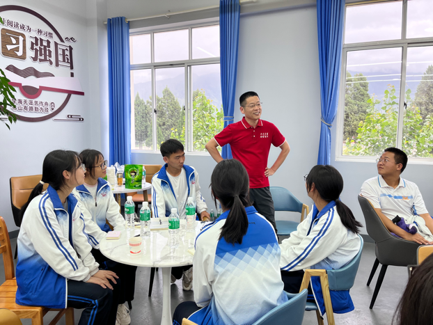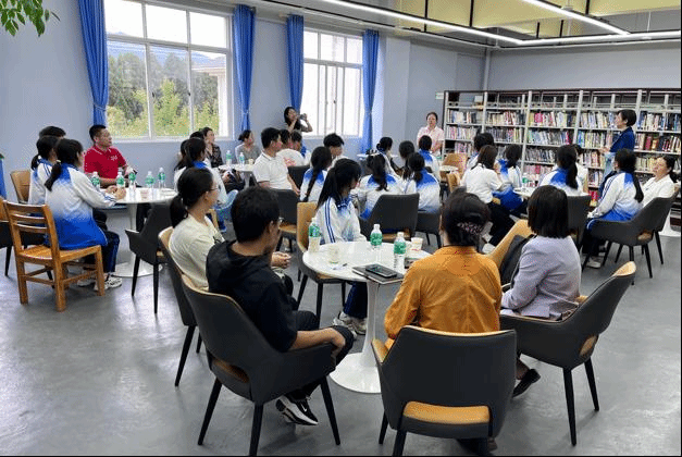 最后,实践研习团来到鹤庆三中,与即将参加高考的学子进行座谈交流。教师党员们向高中生们介绍了北外及pg游戏电子模拟器的基本情况,同时以生动活泼的形式与师生就德国文化进行了互动交流,并在分组讨论环节就大学生活、英语学习、外语教学等主题展开了对话,现场气氛十分热烈。