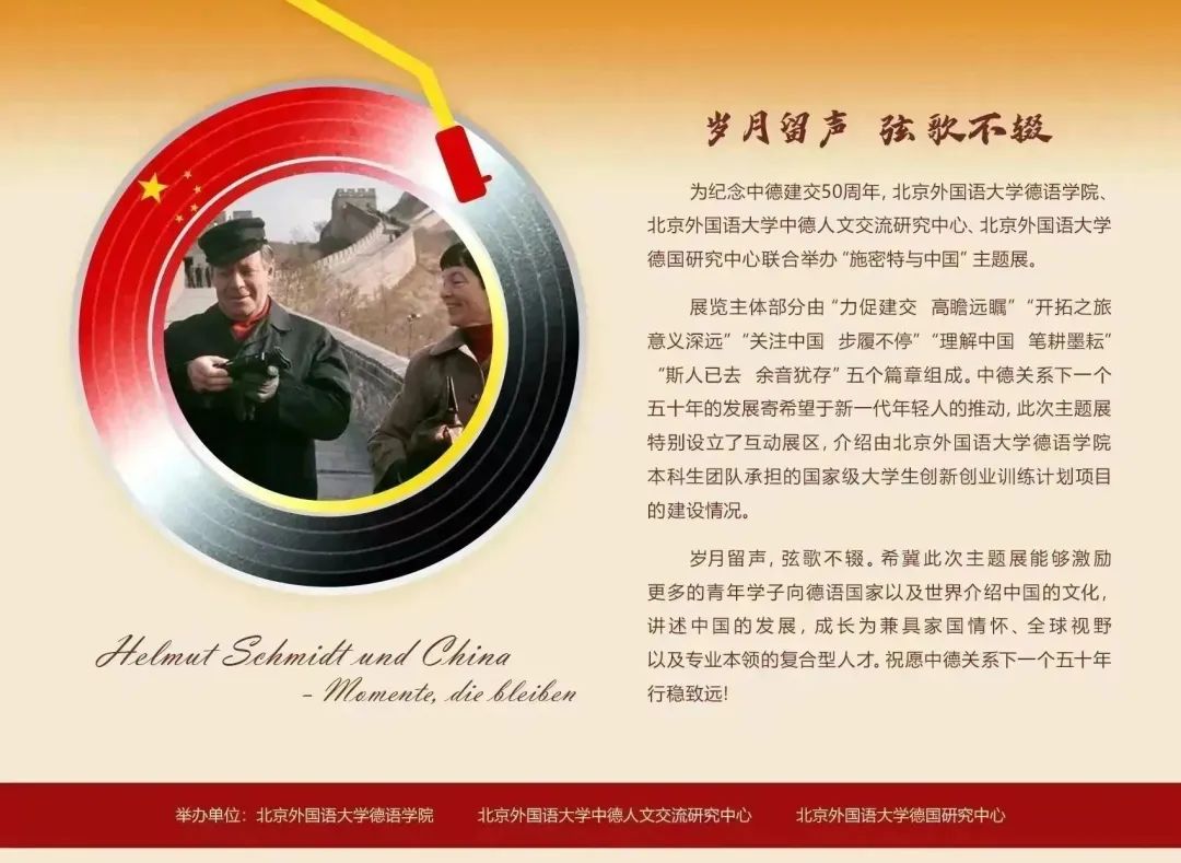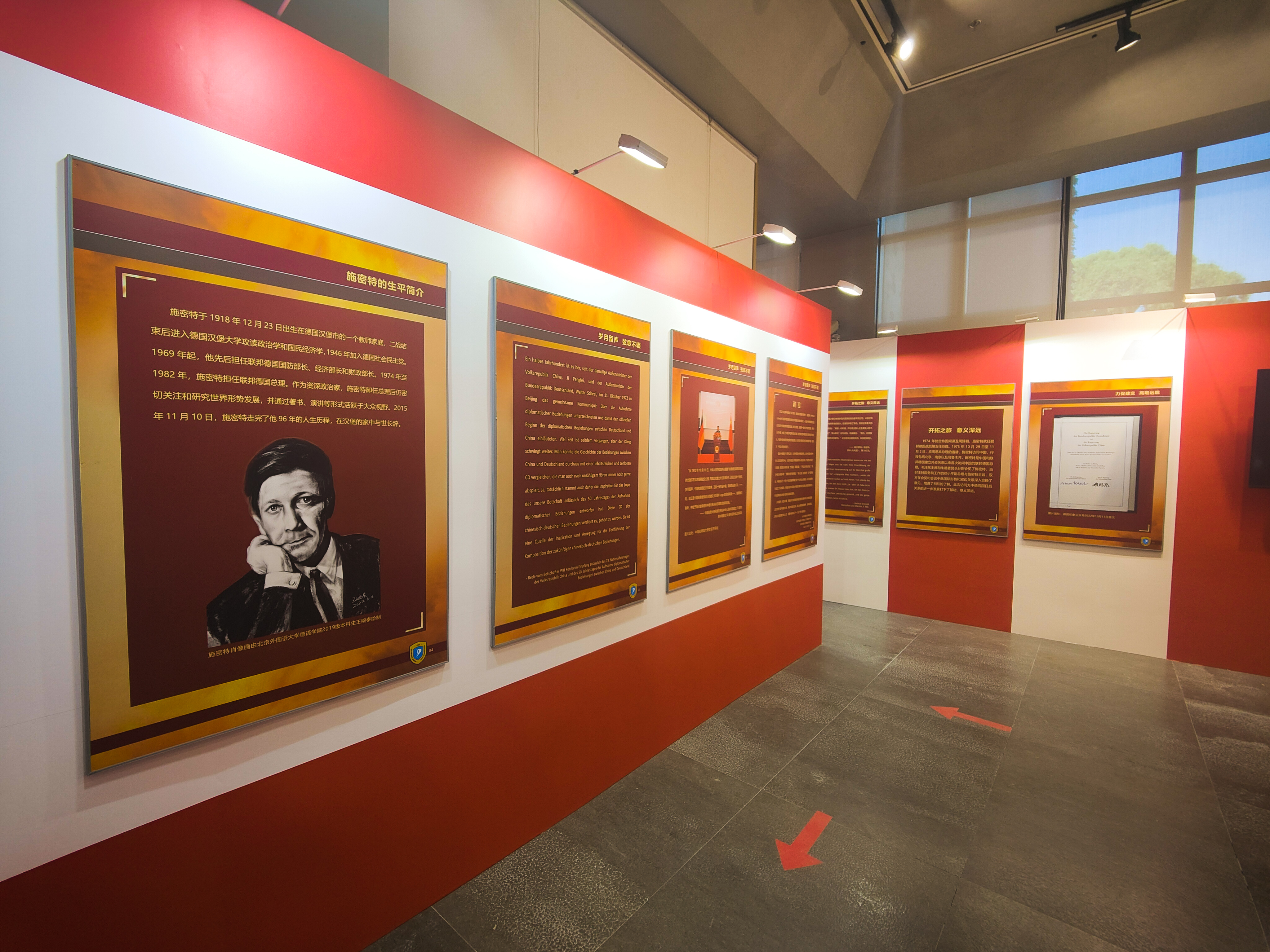 为纪念中德建交50周年,pg游戏电子模拟器、pg游戏电子模拟器中德人文交流研究中心、pg游戏电子模拟器德国研究中心于2022年10月18日至11月底推出了“施密特与中国”主题展,展览的主体部分由“力促建交 高瞻远瞩”“开拓之旅 意义深远”“关注中国 步履不停”“理解中国 笔耕墨耘”“斯人已去 余音犹存”五个篇章组成。中德关系下一个五十年的发展寄希望于新一代年轻人的推动,主题展特别设立了互动展区,介绍由pg游戏电子模拟器本科生团队承担的国家级大学生创新创业训练计划项目的建设情况。