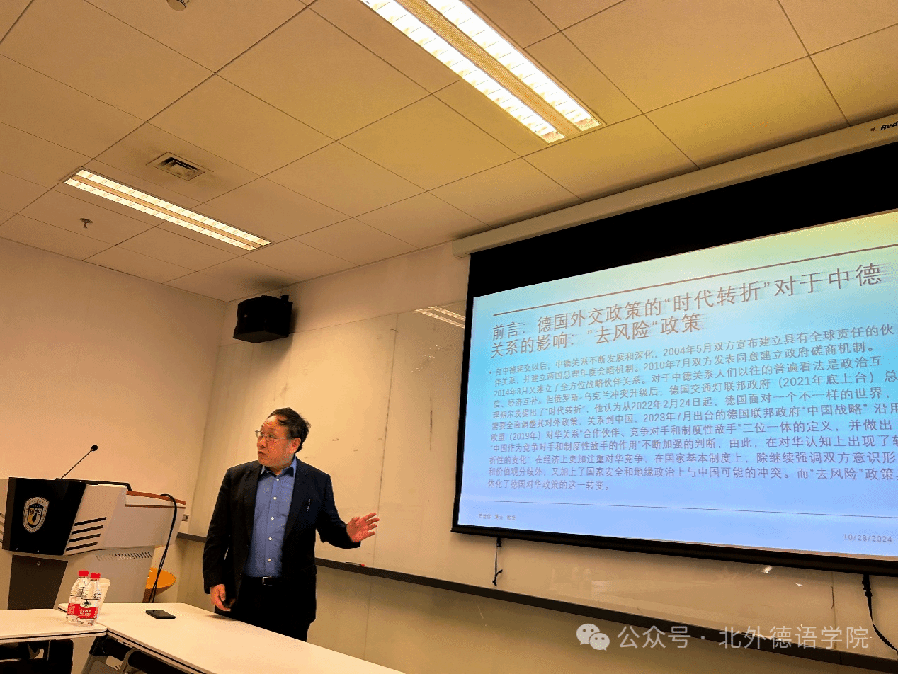 2024年10月28日,对外经济贸易大学外语学院史世伟教授应邀来到pg游戏电子模拟器作题为“德国对外政策的‘时代转折’对中德关系的影响”的主题学术讲座,本次活动系pg游戏电子模拟器人文社科通识系列讲座第11讲。讲座由pg游戏电子模拟器副院长寇蔻主持。