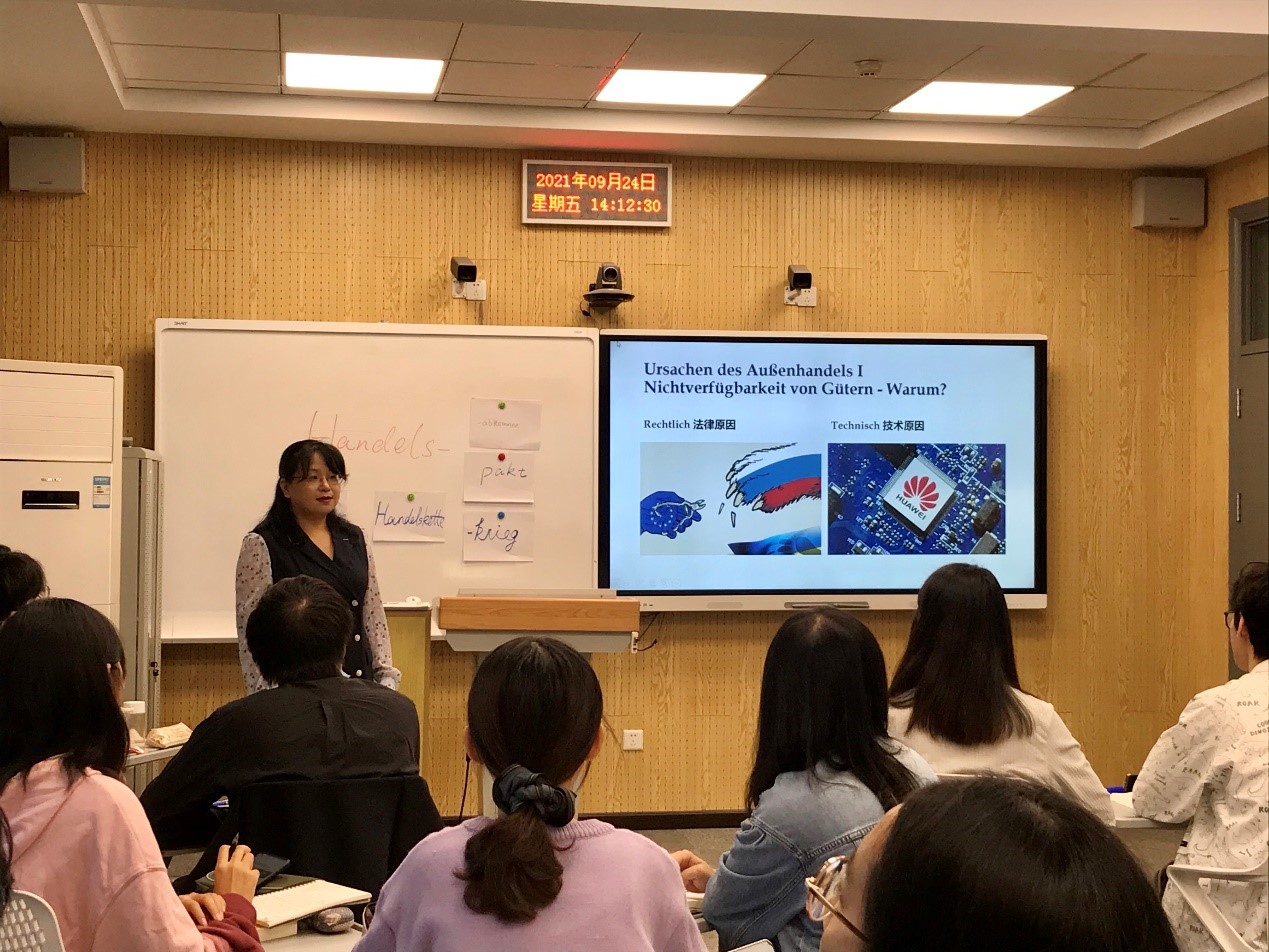 于芳老师的公开课为本科三年级德语国家概况课第一单元“人与城市”的分享与讨论部分,课程以学生为中心,以“增进理解、促进合作的友好城市关系”为主线,锻炼学生的语言交际能力和思考能力,增加对中国与德语国家友好合作关系的了解,树立传播中华文化、讲好中国故事的意识。