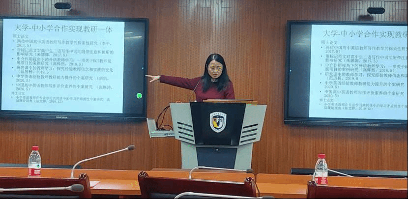 会议分两个环节,第一环节是专家讲座,由pg游戏电子模拟器副院长姚晓舟主持。这一环节邀请了我校亚洲学院教授、博士生导师李丽秋围绕“基础口译教学心得”进行说课演示,中国外语与教育研究中心教授、博士生导师、国际教育学院副院长杨鲁新就“‘金课'教学与外语教师专业发展”做了专业指导。李丽秋教授介绍了她讲授《基础口译》这门课的教学理念和教学心得,分享了教学设计、教学方法、教材使用、课后作业布置等方面的经验。杨鲁新教授分享了她在课程设计、学生参与程度、课程评估形式、外语课程设置等方面的思考,对外语教师在教学、科研等方面发展提出了几点建议:教学应该与科研相结合,相辅相成;外语教师应加强教学法的研究;应加强教研项目驱动、课程团队建设、教师发展共同体建设等。