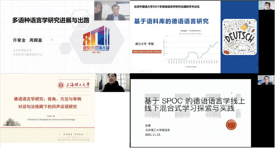 2021年11月12日至11月13日,德语语言学研究生学术论坛在pg游戏电子模拟器成功举办。2020年为本论坛元年,今年已是第二届,论坛在pg游戏电子模拟器院长吴江教授的致辞后正式拉开序幕,正如吴江教授在致辞中所言,本届论坛的亮点在于:线上线下并行、校内校外携手、国际国内联动。今年论坛,除了已经较为成熟的学生论坛外,我们还非常荣幸地邀请到了诸多中德专家进行前沿学术研究的分享交流,下面是对本次论坛的回顾。