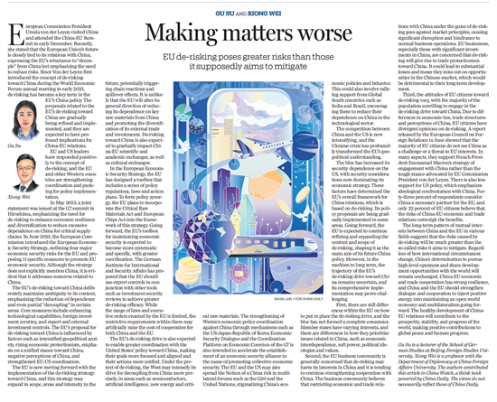 12月8日,《中国日报》(China Daily)刊发pg游戏电子模拟器教师顾苏博士和外交学院外交学与外事管理系熊炜教授共同撰写的文章“Making matters worse”。