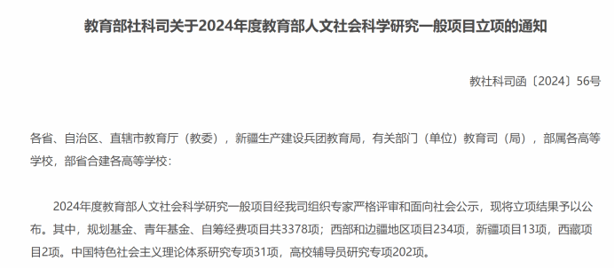 近日,2024年度教育部人文社会科学研究一般项目立项名单正式公布,pg游戏获得两项教育部人文社会科学研究青年基金项目立项。