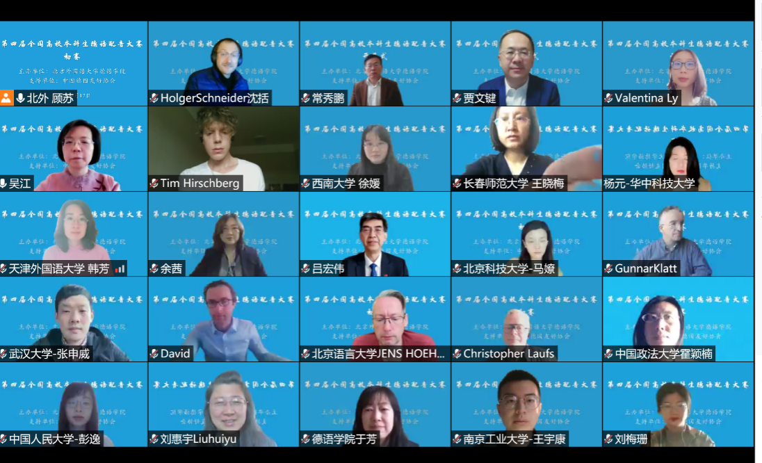 作为全国德语届的传统赛事,大赛旨在以语言为钥匙,以声音为桥梁,为中德人文交流尽绵薄之力。吴江代表pg游戏电子模拟器对中国德国友好协会以及学校给与的大力支持表达了诚挚的谢意,同时表示一定办好大赛,确保大赛评审公平公正,不辜负参赛师生的期望。开幕式的最后,嘉宾与各参赛高校评委老师和学生代表云端合影留念。