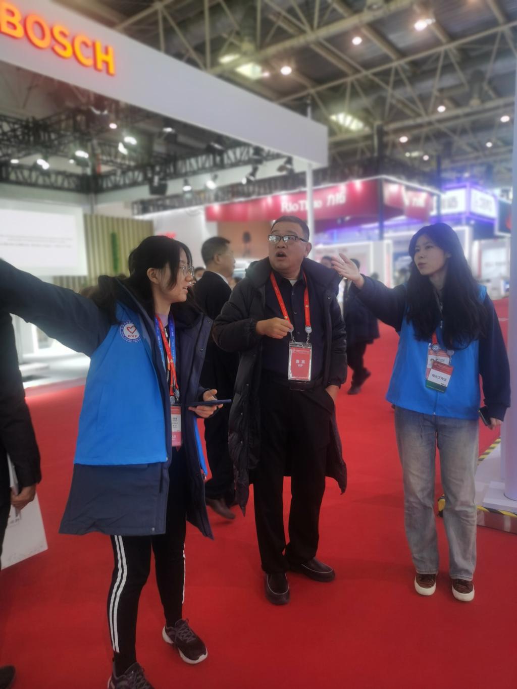 第一天,我作为负责远端集结的志愿者,负责带队,从北京中国国际展览中心(朝阳馆)前往北京中国国际展览中心(顺义馆),我负责一辆中巴带队集结,所以车上乘客不算多。能在车上念出介绍词,保障参会嘉宾顺利抵达展馆对我而言是难忘回忆。抵达以后,我负责保障嘉宾进入场馆的带队工作。