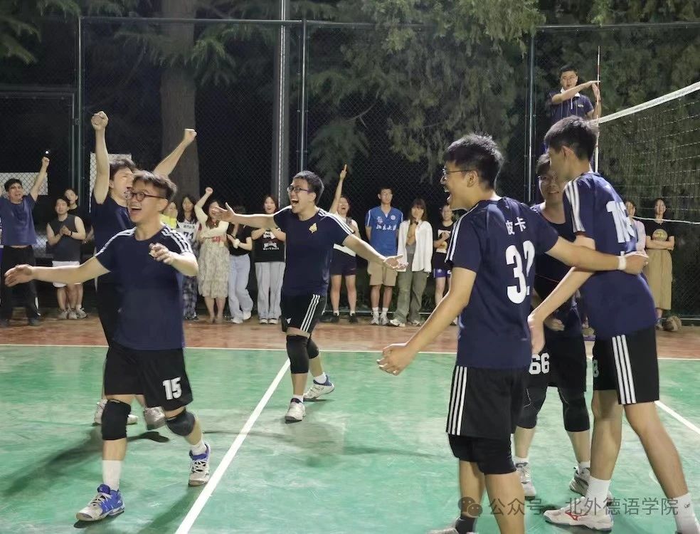 今年的北外杯是我作为替补队员参与的一届比赛。去年有一种种原因以二传的身份在大一加入到德院男排首发阵容,并依靠攻手的素养拿下季军的好成绩。“德语加油!”“德语必胜”“我们是,冠军!”每一次口号的变化,都像是捅破一层窗户纸,让我更加深刻的体会到排球所能带给每一位运动员的动力与能量;比赛前的热身、打垫、扣球,训练时的捡球、发球、配合,可以肯定的说,我们能得冠军,实至名归!