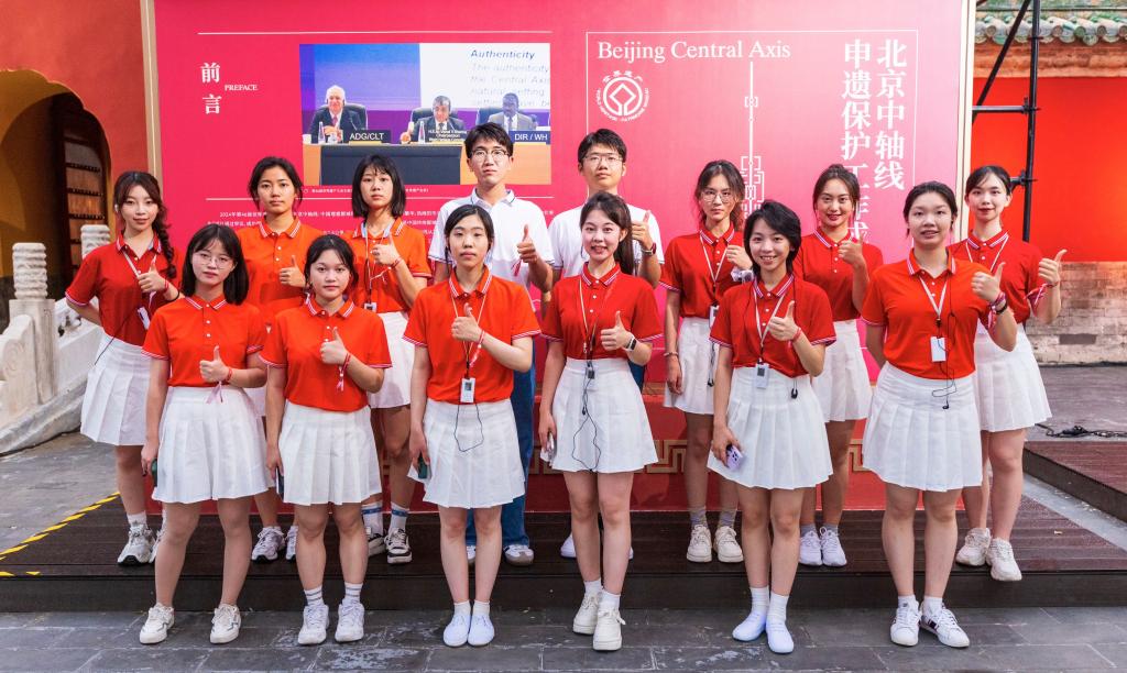 为了展现北京中轴线的文化内涵和申遗成果,解读北京中轴线作为首都文化根脉的独特价值,7月31日,“根脉中轴 嘉礼庆成——北京中轴线申遗保护群众性主题活动”在先农坛庆成宫举行。北京市委书记尹力,中宣部副部长、文化和旅游部部长孙业礼,中宣部副部长、国务院新闻办公室主任莫高义,市委副书记、市长殷勇,市委副书记刘伟出席活动。pg游戏电子模拟器“话中轴·语世界”团队核心成员、来自pg游戏电子模拟器、西班牙语葡萄牙语学院以及国际商学院共计14名学生受邀全程参与了主题活动。活动由北京广播电视台承制并于8月1日19:30在北京卫视播出。