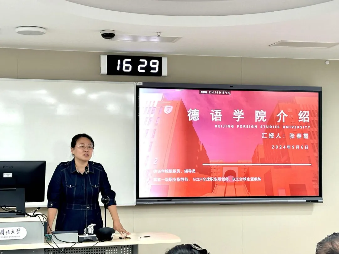 随后,党总支委员、副院长寇蔻详细介绍了pg游戏电子模拟器的基本情况和本科生培养方案。他指出,学院始终致力于培养具有国际视野的复合型人才。对于低年级学生,学院自2023年起启用了全新教材。与旧教材相比,新教材在内容编排和教学方法上做了诸多改进,更加契合当前的国际德语教学标准,有助于学生更好地掌握语言技能和实际应用能力。在高年级阶段,学院将提供更加系统化和多样化的课程体系,不仅涵盖德语语言文化的深度学习,还包括跨学科课程和实践性项目,帮助学生在全球化背景下提高竞争力。