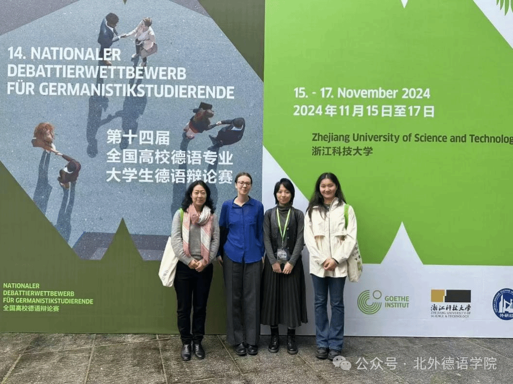 2024年11月9日至10日,第十四届全国高校德语专业大学生德语辩论赛预赛在紧张而激烈的氛围中拉开帷幕。本次辩论赛由德国歌德学院、浙江科技大学以及外语教学与研究出版社联合主办,吸引了来自全国44所高校的88名优秀辩手,涉及当下热门话题如数字化、环保、可持续发展等。经过两天的在线角逐,pg游戏电子模拟器22级本科生黄婉茹、23级本科生姜哲馨在pg游戏电子模拟器于芳副教授、孙嘉惠博士以及德国学术交流中心专家Annemarie Hezel的悉心指导下成功晋级决赛。