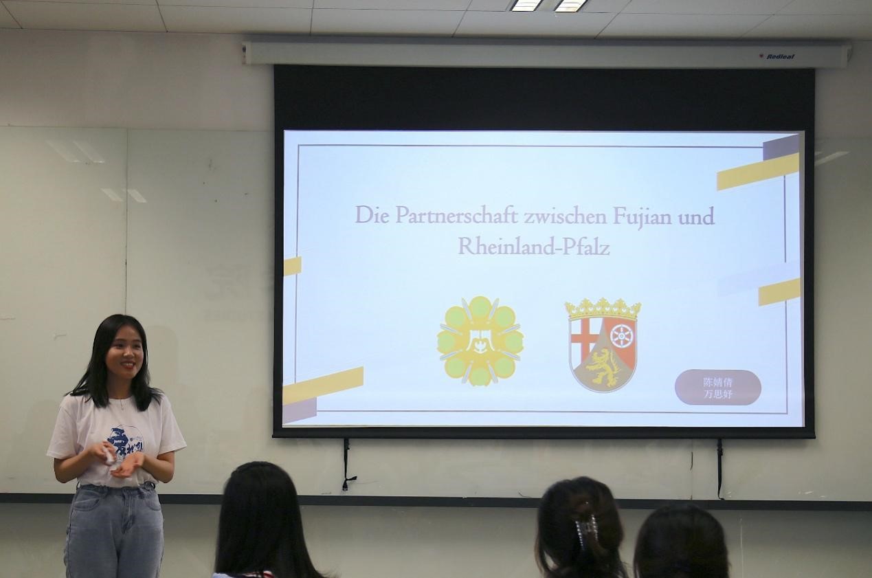 pg游戏电子模拟器本科生陈婧倩和万思妤以闽南语中“茶”和德语中“Tee”的发音之相似为例开启了对中德交流的讲述,报告以福建省与德国莱法州的交流合作为主题,从经济、教育与科技三个方面介绍了两地三十年来的交流合作,并展望了中德两国未来的发展和合作空间。