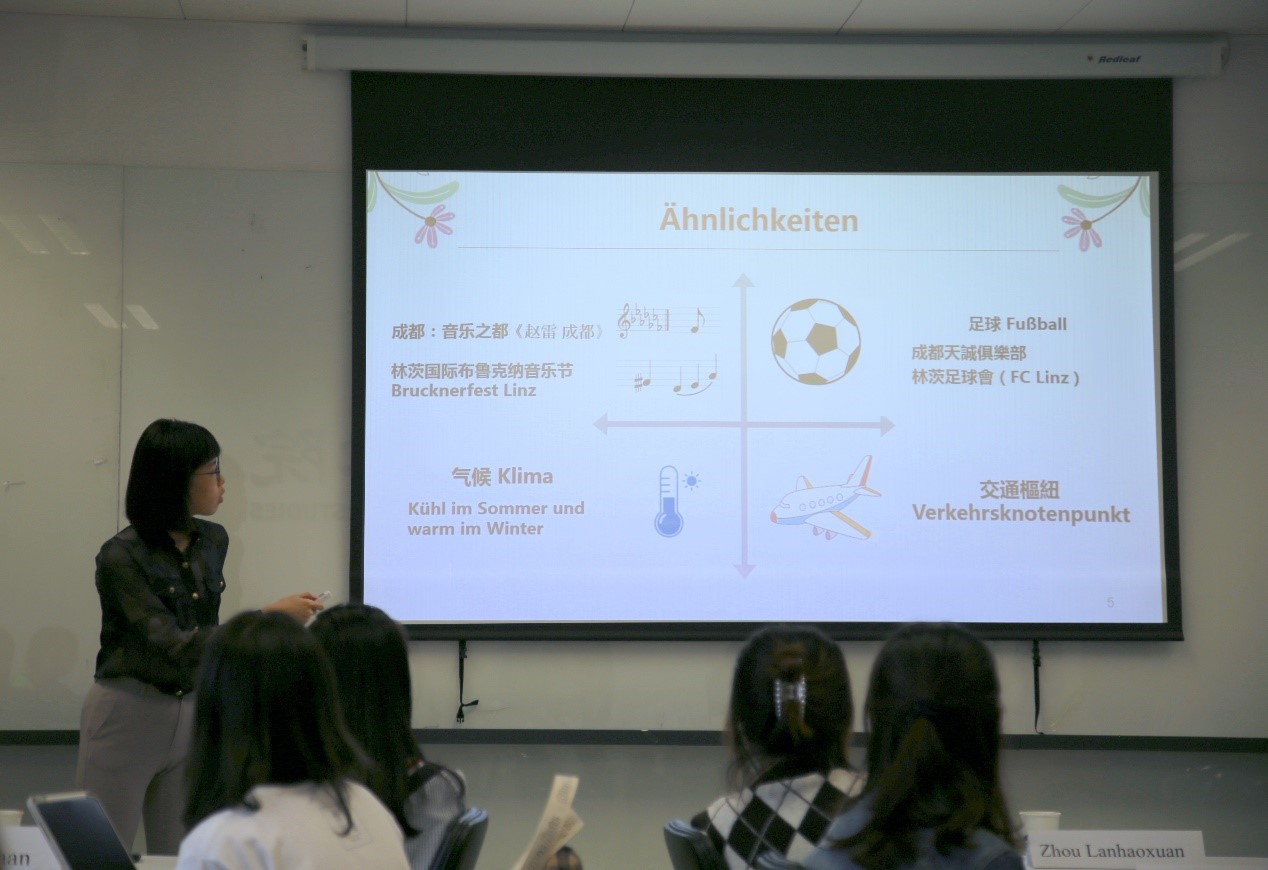 接下来,pg游戏电子模拟器本科生郭沈嘉乐与萧瑀莘(台湾交换生)为大家介绍了“锦城”成都与奥地利著名城市林茨的诸多共同之处,以及两个城市在医疗科技、文化教育等等方面的合作交流。2021年恰逢中奥建交50周年,同学们祝福两国友谊长存,倡议以合作共同应对全球挑战。