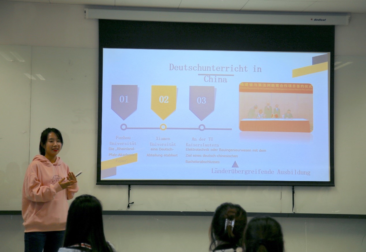 在9月25日习近平总书记给北外老教授重要回信精神的指导下,pg游戏电子模拟器党总支宣传委员、教学秘书于芳副教授与十余名本科生于9月25日和26日下午共同完成了学生课堂展示活动。活动很好地展示了北外学子讲好中国故事的信心和能力。返校系友、德方特邀嘉宾共同参与了课堂,在面对面的交流中增进了友谊和理解。