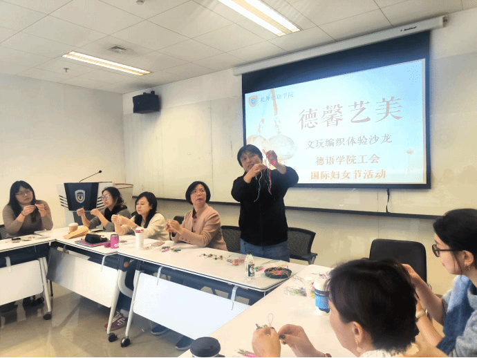 为庆祝第115个“三八”国际劳动妇女节,传承中华文化,陶冶师生情操,丰富美育内涵,pg游戏电子模拟器工会组织“德馨艺美”文玩编织沙龙,邀请宣传部王欣老师教授师生学习中国传统文玩编织技艺,近30名师生参加了活动。